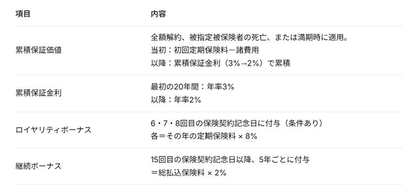 商品の基本的な設計は、サンジョイグローバル2などの配当付き保険と同じだ。名義変更や証券分割など、資産承継を柔軟に行うために必要な機能は組み込まれている。
